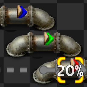 Adds three seperate animated valves for pipes: overflow, top-up and one-way/check valves. Inspired by Flow Control and Advanced Fluid Handling. The thresholds can be configured using shortcuts. Uses valve functionality provided by Factorio.